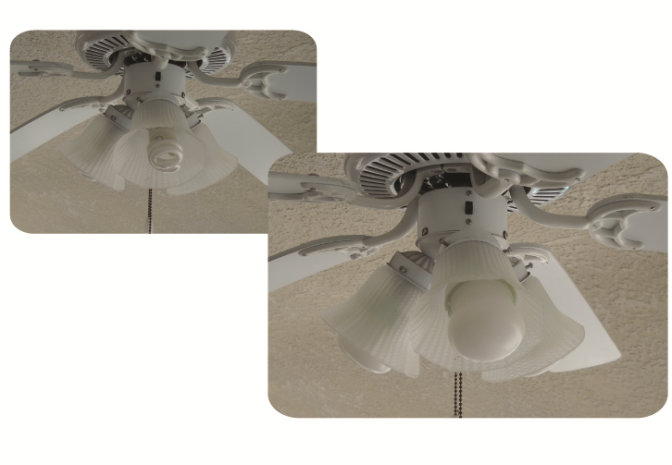 Request More Information Sign Up for Product AlertsThis is a device that covers twist style compact fluorescent bulbs. The device is made up of two components, namely, a snap base and an enclosure. To use the device you first thread the screw portion of the CFL bulb through the center opening of the snap base. Then you screw the bulb with the base into the light fixture. This locks the snap base between the fixture socket and the ballast of the CFL. Finally, you simply fit the enclosure over the twist filament and snap it to the base. The cover will block out harmful UV light emitted from the CFL bulbs while making them aesthetically pleasing. This small reusable shatter proof CFL cover is perfect for ceiling fans, pendants, and smaller light fixtures. Designed for use with 9W (40W equivalent) CFL bulbs.