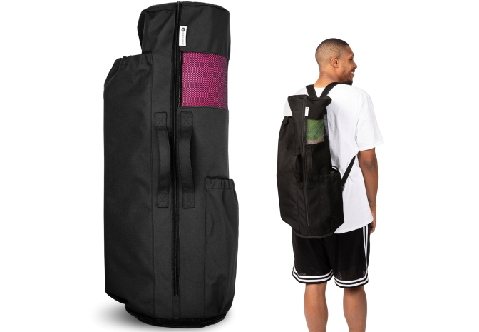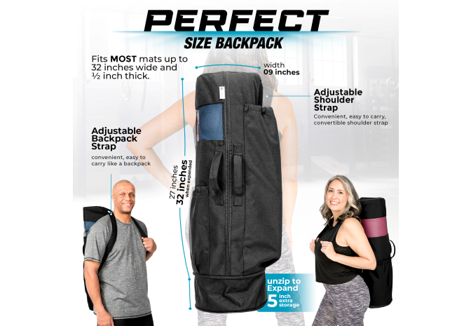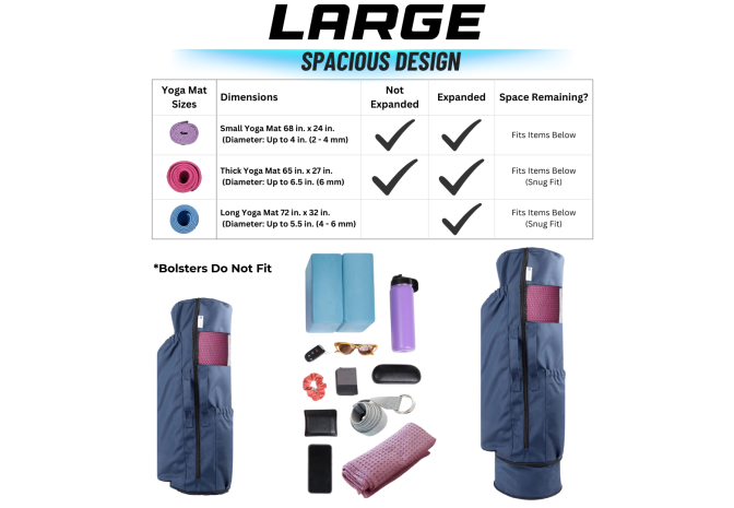 The MAGNILAY Yoga bag is expandable up to 32 inches and converts to a yoga backpack. You can also wear as a cross-body bag or can be carried as a duffle with the handles. The yoga bag has extra large pockets for 2 yoga blocks and water bottle.